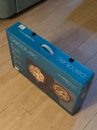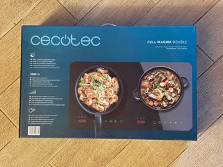 Placa de inducción vitroceramica Cecotec Full Magma Double con dos zonas para cocinar simultáneamente. - Diseño de cristal esmaltado de alta resistencia. - 3500 W de potencia total. - 10 niveles de potencia para cada receta. - Pantalla táctil simple y fácil de usar. Ideal para segunda residencia, chalet, Camper y camping. Ocupa poco en la cocina y se puede usar en jardín, balcón, etc... para cocinar con los amigos. Totalmente nuevo. Caja precintada y sin abrir. Precio nueva 99€