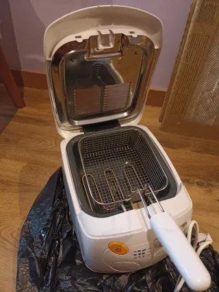 Pequeña freidora de aceite. Ideal para una persona . Capacidad para un litro de aceite .