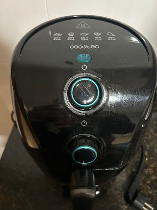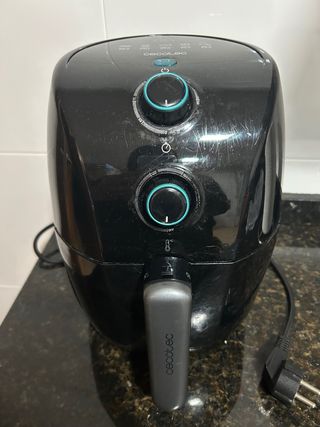 Freidora de aire Cecotec con capacidad de 1.5 litros. Diseño moderno y compacto. - Color negro - Panel de control con dial. Poco Usada. Funciona perfectamente.