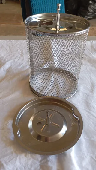 Conjunto de accesorios para freidora de aire de 10 litros. Incluye un cesto giratorio y un pincho para asar. - Cesto de malla metálica. - Pincho con tres puntas. - Material: Acero inoxidable.