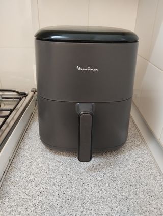 Freidora de aire Moulinex EZ201D10 en buen estado. Es de acero inoxidable, con un diseño elegante y compacto. - Capacidad para cocinar una gran variedad de alimentos. - Control de temperatura y tiempo regulable. - Fácil de limpiar.