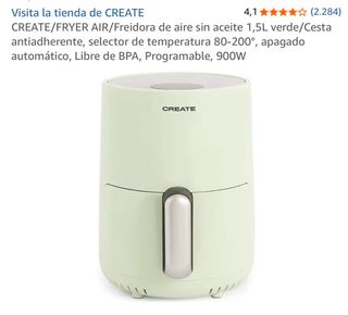 Freidora de aire CREATE de 1,5 litros en color verde. Cuenta con cesta antiadherente y selector de temperatura. - Capacidad: 1,5L - Color: Verde - Cesta antiadherente - Selector de temperatura: 80-200° - Apagado automático - Libre de BPA - Programable - Potencia: 900W