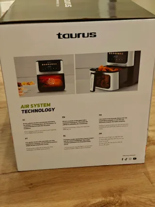 Freidora de aire Taurus con capacidad de 3,5 litros. Muy poco uso, apenas unas 10 veces. La vendo porque me han regalado otra más grande. Su diseño es moderno y compacto, ideal para cualquier cocina. No pesa casi nada. - Fríe, asa, hornea y calienta. - Capacidad 3.5 L, 1300 W, 80-200 °C. - Antiadherente, libre de PFOA y BPA. - Color negro brillante. - Panel de control digital.