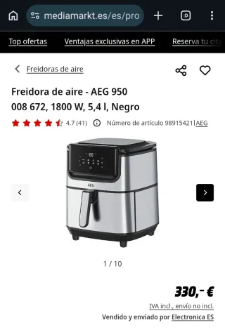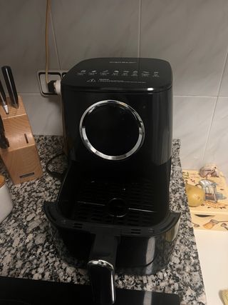 Freidora de aire de 2,5 litros. El recubrimiento en el fondo ya no está en perfectas condiciones. Funciona perfectamente, me gusta más que Xiaomi (es más rápida)