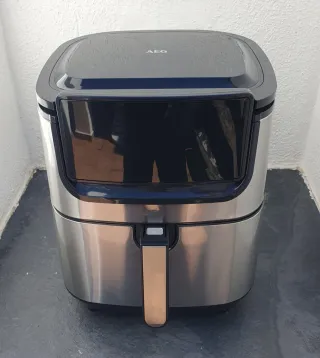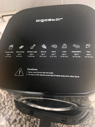 Se vende por comprar una más grande, funciona perfectamente. Tiene algún desgaste en la cesta peor no influye en la cocción. Freidora de aire AIGOSTAR en color negro. Cuenta con un diseño moderno y compacto. - Control de temperatura. - Temporizador.