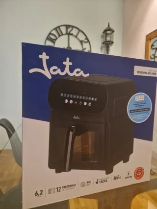 Airfryer Taurus 3,5l 1.300W negra. La hemos usado bastante, pero está muy bien cuidada. El plástico de la cesta extraible está algo mate de fregarla. Vendemos porque hemos comprado una freidora de aire más grande, una Cosori de 5,5 litros. Te llevas una freidora de aire que funciona genial por muy poco dinero. Preferencia entrega en mano en Valencia o Almansa.