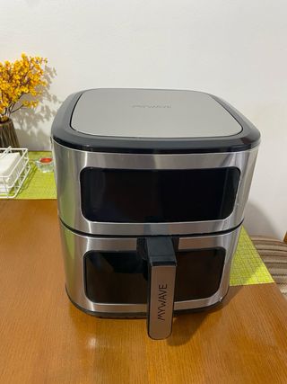 Freidora de aire con gran capacidad de 8 litros y doble resistencia para una cocción más eficiente. Usada dos veces, la vendo por ser muy grande para mí. - Capacidad: 8 litros. - Doble resistencia. -ventana con luz para ver lo que se cocina. -10 modos de cocción. - recetario y embalaje original.
