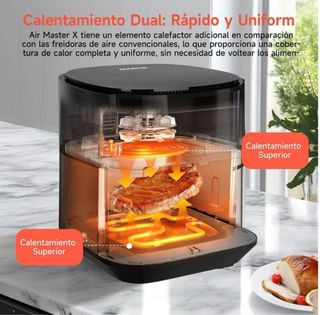 Freidora de aire MasterPRO Maestro de 8 litros con tecnología Dual Heat. - 360° Hot Air Circulation. - 80% menos consumo de aceite. - 30% más rápida que el horno. - 8 funciones. - Potencia: 2250W.