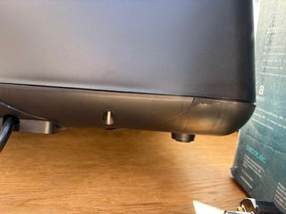 Freidora de aire Cecotec en acabado plateado y negro. - Diseño moderno y compacto. - Asa extraíble para facilitar su uso. - Funciona perfectamente solo se ha usado para hacer patatas y alitas y salen buenisimas