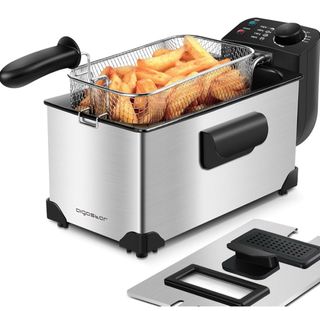 La freidora de 2100W y capacidad de 3 litros permite cocinar hasta 900 g de patatas. Con sistema de filtrado de aceite, tapa con visor y opción de freír con tapa cerrada, asegura resultados limpios y controlados. Su temperatura regulable y resistencia sumergida garantizan un calentamiento rápido y uniforme. Incluye sistema de elevación de la cesta, base antideslizante y es totalmente desmontable con cuerpo y cubeta de acero inoxidable. Ideal para disfrutar de frituras perfectas en casa de forma práctica y segura.