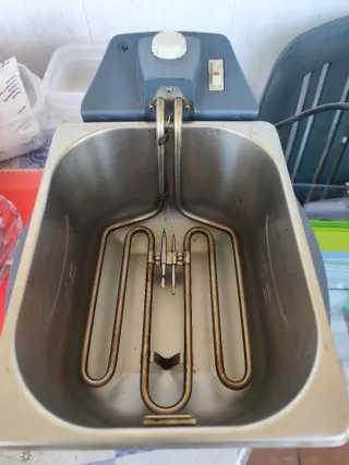 Equipo Horeca Select para baño maría. Modelo:Horeca select Metro/makro GBM 2026 Se trata de un baño maria eléctrico profesional. Material: Acero inoxidable Medidas: caja exterior, 54 largo x 34 fondo x 30 alto,Bandeja interior: 50 largo x 30 ancho x 15 alto con tapa de 54 x 34. Con grifo de desagüe. La base inferior tiene varias zonas con óxido ya que está tapa no es de acero inoxidable y el tapon del grifo de desagüe tiene una grieta. La máquina está probada y funciona perfectamente. Cocina,restaurante,horno, rostiseria,restauración,bar, cocinero,camarero/a,chef, Sarten,fogones,freidora, báscula,campana,josper, maquinaria.