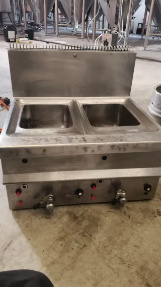 Freidora industrial a gas de sobremesa, marca Repagas, con dos cubas de 12 litros cada una. - Fabricada en acero inoxidable. - Diseño robusto y duradero. - Mandos frontales para control de temperatura. Valor en tienda nueva 3000 euros