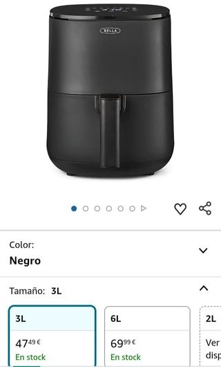 Freidora de aire Russell Hobbs con gran capacidad. - Modelo: Freidora de Aire, Freidora sin Aceite, Robot de cocina & Grill XL. - Capacidad: 5,5 litros. - Funciones: 3 en 1, air fryer. Muy buen producto, muy buena marca ha sido el único que ha cumplido con mis expectativas y exigencias después de probar muchas marcas. El pollo asado queda perfecto tierno, también tiene funciones de guisar y Sarten.