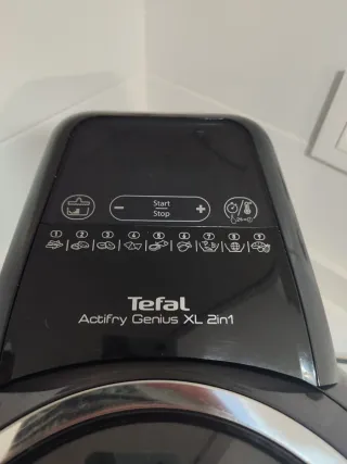 Freidora de aire Tefal Genius. - Diseño moderno en blanco y negro. - Tapa transparente para ver la cocción. - 9 programas - capacidad 1,2 l para 4 personas - compementos Precio nueva 250€ en amazon