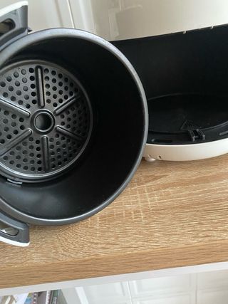 Freidora de aire sin estrenar, con caja y manual. Regalo molde de silicona y 40 moldes de papel. Es para 2 personas.