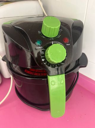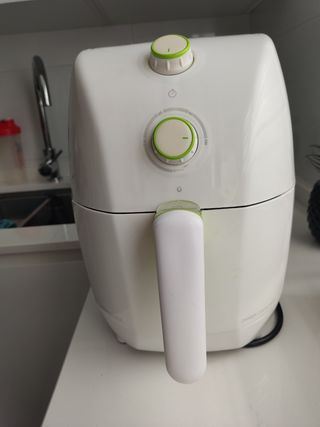 Freidora de aire nueva sin ningún uso, solo la saqué para hacerle la foto. Temperatura regulable entre 80 - 200 ºC. Cesta extraíble con revestimiento antiadherente para que no se peguen los alimentos. Ficha técnica: Potencia: 1000 W. Capacidad: Aprox. 2,8 L. Medidas: Aprox. 29,6 x 24,5 x 40,8 cm. Peso: 2,8 kg.