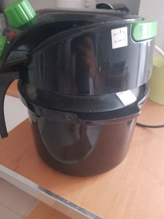 Freidora de aire Moulinex en color negro y verde oscuro. Cuenta con pantalla digital y varios programas preestablecidos.Comprada en el Corte Inglés hace 2 meses por 96 euros,se vende por no usarse. - Temperatura máxima: 200" - Panel de control táctil. - Diseño moderno y compacto.