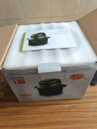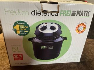 freidora de aire freimatic nueva, sin uso, en la caja y la parte de la freidora es de cerámica y tiene su reja aparte se puede cocinar muchas cosas en poco tiempo y sin ensuciar y con muy poco aceite