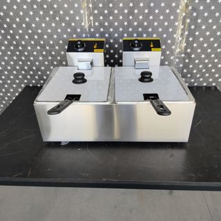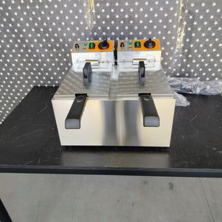 🍚👨🏾🍳 MAQUINARIA PARA ALIMENTACIÓN Y HOSTELERÍA Freidora Industrial Eléctrica Doble de 5+5 Litros.🎛️ Medición 54x43x30 cm 💡🚦 Seña: Acero Inoxidable. Sobremesa. Sistema de “zona fría”. Cesta sólida y tapa equipada con asas. Dimensiones de la cesta: 19x21x11 cm Dimensiones de la Cuba: 26x32x15 cm Peso: 12 Kg Potencia: 6,4 Kw Voltaje: 220 V (Monofásica) 🚛 Entrega 48-72 horas 📦 Portes Gratis ☘️ 684760836