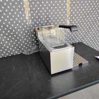 🍚👨🏾🍳 MAQUINARIA PARA ALIMENTACIÓN Y HOSTELERÍA Freidora Industrial Eléctrica Simple 5 Lts Profunda sin grifo de desagüe en modelo sobremesa de la marca Caterina. 🎛️ Medición 29x43x27 cm 💡🚦 Seña: carcasa de Acero. Termostato seguridad. Sistema zona fría. Cesta sólida y tapa equipada con asas resistentes. Panel de control extraíble. Potencia: 3 Kw Voltaje: 230 V. 🚛 Entrega 48-72 horas 📦 Portes Gratis ☘️ 684760836