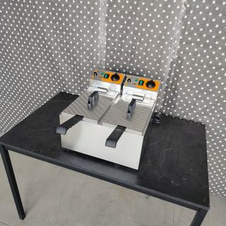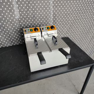 🍚👨🏾🍳 MAQUINARIA PARA ALIMENTACIÓN Y HOSTELERÍA Freidora Industrial Eléctrica Doble 5+5 Litros sin grifo de desagüe en modelo sobremesa de la marca Caterina. 🎛️ Medición 42x43x32 cm 💡🚦 Seña: carcasa de Acero. Termostato seguridad. Sistema zona fría. Cesta sólida y tapa equipada con asas resistentes. Panel de control extraíble. Potencia: 4 Kw Voltaje: 230 V. 🚛 Entrega 48-72 horas 📦 Portes Gratis ☘️ 684760836