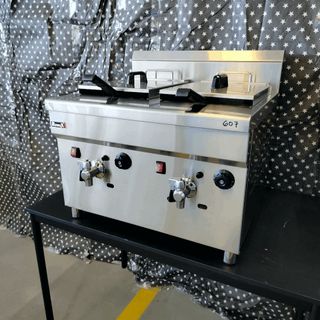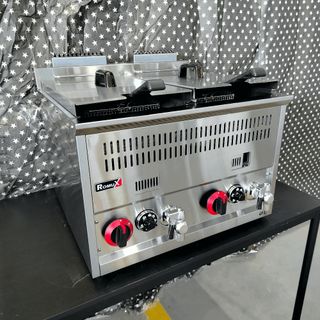 🍚👨🏾🍳 MAQUINARIA PARA ALIMENTACIÓN Y HOSTELERÍA Freidora a gas doble de 15+15 litros de capacidad 💡🚦 Seña: Acero Inoxidable Potencia: 12 kw (2) Capacidad: 15+15 litros Nº Cubas: 2 Energía: Gas Peso: 27 kg Temperatura: 30~210ºC Grifo de desagüe Dispositivo de seguridad y control de temperatura.Tipo de Cabezal GR: 30GR 🚛 Entrega 48-72 horas 📦 Portes Gratis ☘️ 684760836 Medidas: 61x64x42 cm