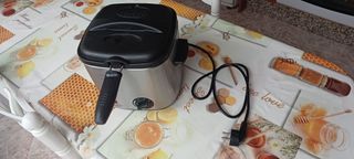 Se vende freidora marca San Ignacio, modelo de referencia 37680. Tiene una potencia de 1000w y una capacidad de 1 litro. Color plateado y negro. Se incluye cesta. En muy buen estado, con poco uso. Lista para usar. 25€