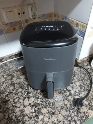 Freidora de aire Moulinex en color gris. Incluye accesorios. - Freidora de aire. 5L - Accesorios para freidora. Está nueva, sin estrenar, no se ha usado. Viene en su caja de embalaje.