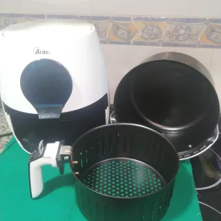 Freidora de aire, en perfecto estado y funcionamiento. Especificaciones en la imagen, tiene poco más de un año. De regalo un paquete de bases de papel para hornear.