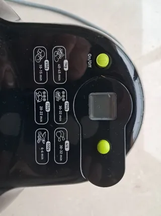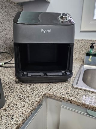 vendo freidora de aire en buen estado con cestilla y rejilla nueva de recambio y funda de la marca KYVOl , es buena marca