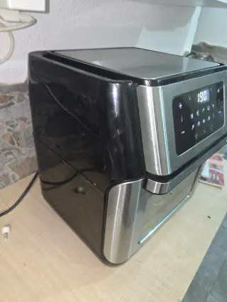 IMPORTANTE: se vende por no calentar bien. Enciende y el ventilador funciona, pero no calienta a alta temperatura. Por lo demás, estado perfecto, como se ve en las fotos. En el 80% de los casos esto es debido al fusible térmico, pero no sé cambiarlo al no tener conocimientos de electricidad. Por este motivo he preferido comprar otra. Si sabes cómo cambiarlo o arreglarla, tienes una freidora de aire totalmente funcional por un precio mínimo, o aprovecharla para despiece. ✅ Capacidad de 5,5 litros (1700W) ✅ 13 modos automáticos ✅ Panel led táctil ✅ Hasta 205°C y 60 minutos ✅ Color rojo burdeos, bonito y elegante Entrega en mano.