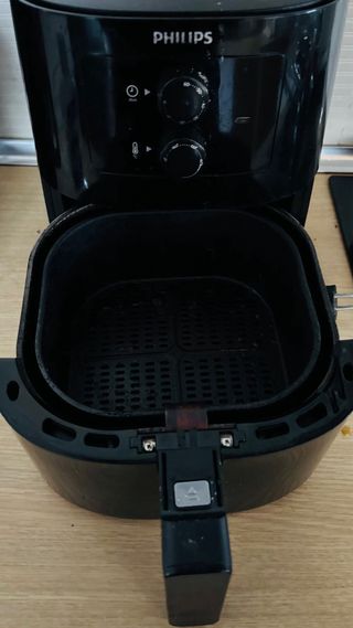 Freidora de aire Ufesa en color negro. - Diseño compacto. - Asa extraíble para facilitar su uso. - Un poco desgastada 20€ NEGOCIABLES