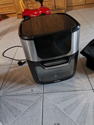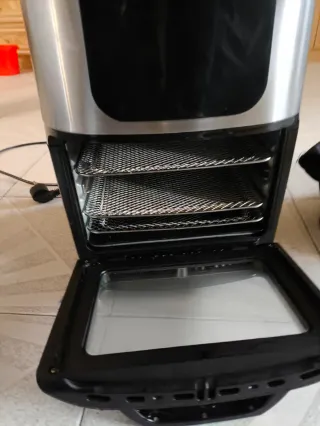 Freidora de aire Innsky de 10 litros con función de rotación. Semi nueva,utilizada muy poco,pongo ess fotos porque esta guardada y asi se ven mejor las carcteristicas - Capacidad de 10L. - Potencia de 1500W. - 10 programas preestablecidos. - Incluye 6 accesorios. - Función de deshidratación. - Pantalla LED táctil. - Temporizador.