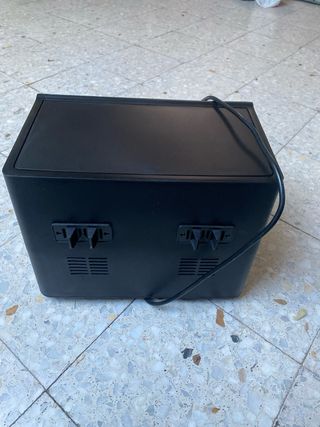Freidora de aire en color negro. Funciona bien y calienta rápido, pero tiene la rueda del tiempo rota (ver quinta foto). De ha rajado y no ajusta bien por lo que a veces el tiempo no se consigue colocar bien, pero se puede arreglar. - Control de temperatura. - Temporizador. - Asa extraíble para facilitar su uso.