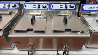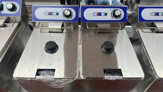 Liquidación! Freidora eléctrica de acero inoxidable con dos cubetas de 8 litros cada una. Medida 55*42*23cm Potencia 3,25+3,25kw 230V Monofasico. Temperatura 60-200°C . Precio no incluido Iva. Tel 633961349
