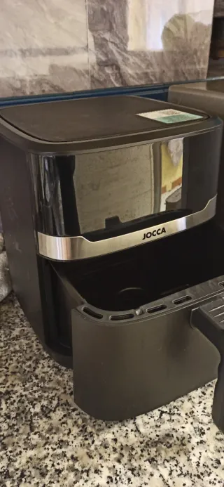 Freidora de aire Jocca con gran capacidad. - Color negro. - Diseño moderno y elegante. - Asa para extraer la cesta.