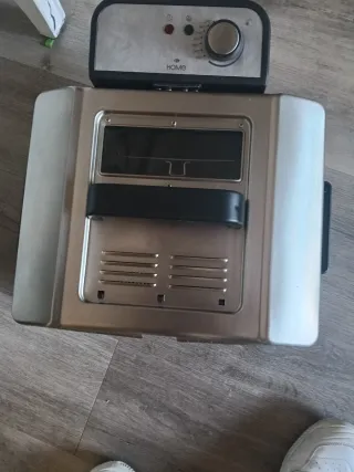 Horno freidora de la marca Aigostar. Se ha usado bastante, por lo que como se puede apreciar tiene señales de uso. Funciona perfectamente, cuenta con 2 niveles para hornear simultáneamente y un tambor rotatorio para freir o asar revolviendo los alimentos. Vendo por cambio a freidora de aire. Solo envío por wallapop, o por agencia que lo recoja en casa