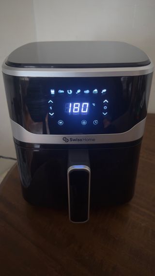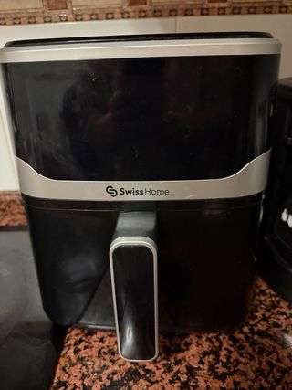 Freidora de aire Swiss Home en excelente estado, casi sin uso. - Diseño moderno y compacto. - Panel de control digital. - Asa ergonómica para fácil extracción.