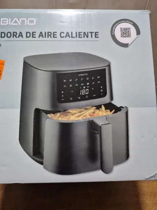 NO ENVIO. Freidora de aire caliente Ambiano en color gris. Cuenta con pantalla digital y varios programas. - Capacidad de 180°C. - Incluye recetas digitales. Air fryer 6,5l 1700W. Comprada en Aldi el 19/1/26. NUEVA. Sin uso, solo sacada de la caja. Se entrega ticket de cara a garantia. A recoger en calle Progreso (a 5 minutos de Carrefour avda. del Llano). No rebajo (esta nueva a casi mitad de precio). No contesto a preguntas. Respondo por orden a interesados.