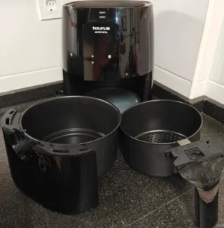 Freidora de aire Taurus Air Fry digital, en buen estado. Poco uso. No tiene ningún golpe ni defecto en el color. - Modelo: AF1300D - 3.5 L - 1300 W - Color negro - Marca: Taurus - Tipo: Freidora de aire digital - Color: Negro - Incluye cesta y bandeja