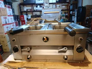 Dos freidoras industriales de gas butano en buen estado. Son de acero inoxidable y parecen estar en buenas condiciones. Precio por unidad - Marca: Repagas - Funcionan con gas butano - Son dos unidades
