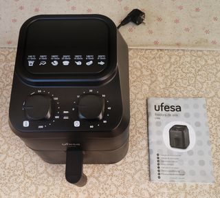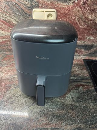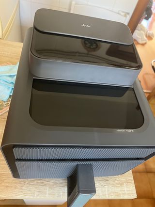 Freidora de aire prácticamente nueva. Tiene dos compatimientos. Incluye caja Solo tiene unos pequeños rayones en la parte superior - Modelo compacto y elegante. - Color negro.