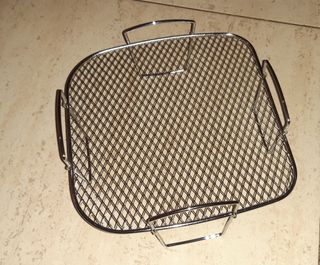 Rejilla metálica para freidora de aire. Su diseño permite una buena circulación del aire. - Material: Metal cromado. - Asas laterales para facilitar su manejo. - Forma rectangular con esquinas redondeadas. Nuevo, sin uso. Envío fuera de walapop.