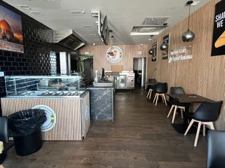 Oportunidad única para adquirir todo el contenido de un restaurante. - Equipamiento de cocina profesional: freidora doble, plancha, microhondas, asador de kebab, superficie de preparación en acero inoxidable. Extractor profesional. Frigorifico de bebidas - Mobiliario: 12 sillas, 6 mesas. 4 mesas exterior con banco. - Cajero e impresora de ticket - 2 pantallas de televisor, con soporte de techo - Illuminación decorativa - Toldo exterior Nuevo en 2021, con uso. En necesidad de limpieza profunda Recogida por comprador Pedir cita si quiere ver/medir.