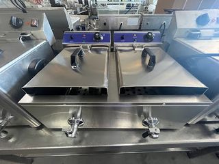 Freidora eléctrica doble de sobremesa con grifo fabricada en acero inoxidable, está en casi perfecto estado y cuenta con garantía