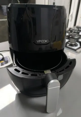 Freidora de aire VPCOK en color negro. Diseño moderno y compacto. En perfecto estado como se puede apreciar en las fotos. - Asa plateada. - Acabado brillante.