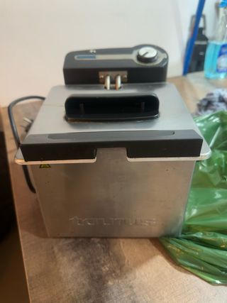 Freidora de aire Taurus Air Fry Digital 6S AF1700D. La máquina funciona correctamente (calienta y temporiza bien). El cesto tiene un agujero por óxido, por eso el precio. Ideal para piezas, para quien ya tenga cesto compatible o quiera comprar el repuesto aparte. Estado exterior normal de uso. Entrega en Palma. Precio ajustado, no negociable.