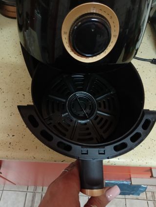 Freidora de aire ,como se ve en la foto el mango está con celo no engancha bien por lo demás está casi nueva 4 usos
