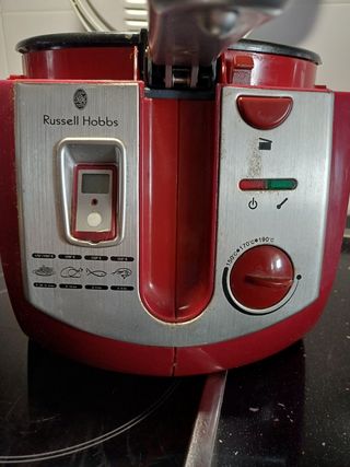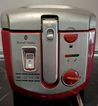 Freidora de aceite Russell Hobbs de 5 litros, en buen estado. Tiene algunas señales de uso, pero funciona correctamente. - Capacidad: 5 litros - Marca: Russell Hobbs - Único detalle: no funciona el termostato pero fríe perfectamente Sólo Venta en persona