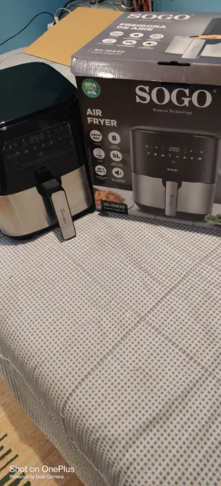 Freidora de aire SOGO en color negro y plateado. Cuenta con una capacidad de 5 litros...sin estrenar..(un regalo que ya tengo) - Modelo SS-10830. - Potencia de 1400W. - Temporizador y control de temperatura.